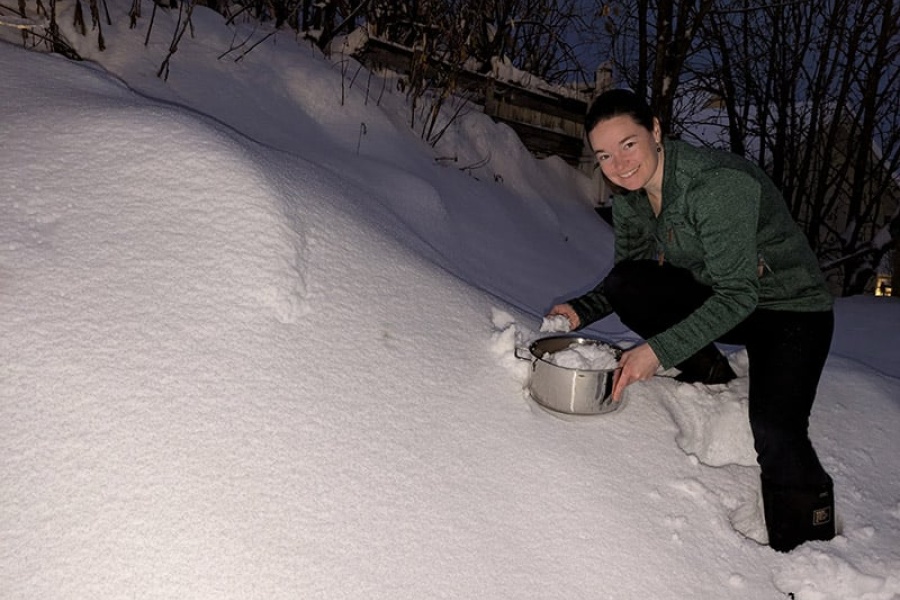 Cleo Davie-Martin samler inn ren snø i kasseroller midt på natten.