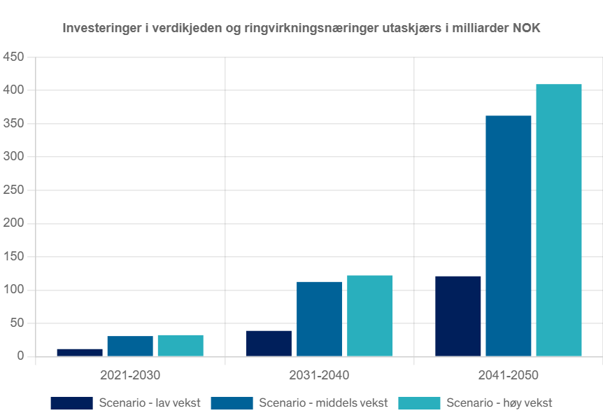 - Det er betydelig finansiell risiko og innovasjonsbehov for investeringer i nye havnæringer som offshore havbruk og havvind, noe som fordrer kommersielle tillatelser med tilstrekkelig varighet og fornuftig prising, samt særskilt risikoavlastning i form av offentlig støtte til innovasjonsprosjekter. Dette handler også om å skape et tilstrekkelig stort og krevende hjemmemarked for norske leverandører som skal konkurrere globalt